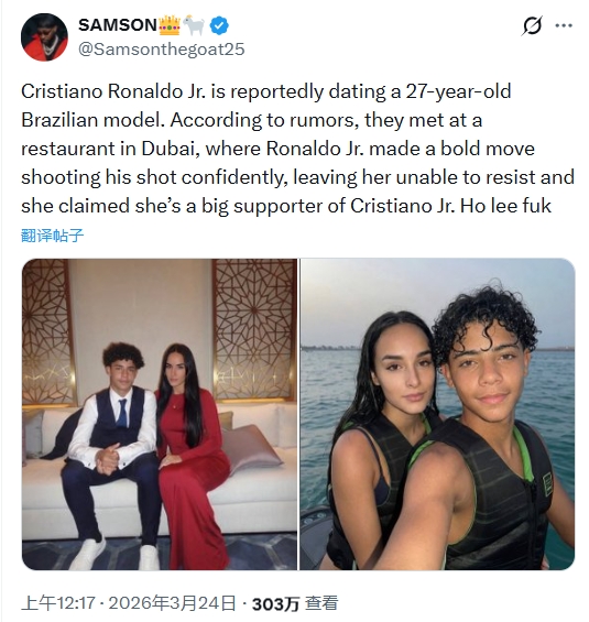 网传15岁迷你罗与27岁巴西模特交往?系AI图,原图的女子是乔治娜