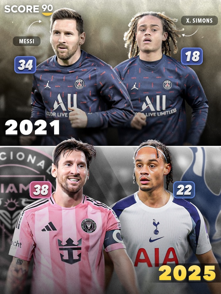 2021年,梅西、哈维-西蒙斯一同效力巴黎